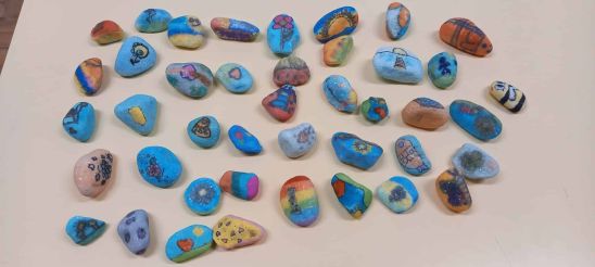 Pintura de pedrinhas (fornecidas pela associação Pedrinhas), nas aulas de Educação Visual;
