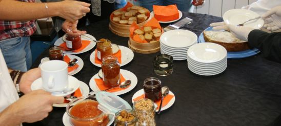 No passado dia 14 de outubro, professores e assistentes operacionais da Escola Básica Marquês de Pombal foram surpreendidos, no intervalo das dez, com um chazinho e uma prova de deliciosas compotas tradicionais, gentilmente oferecidas por Vítor Machado, proprietário do espaço “Trás-os-Sabores”, situado em Leiria. A ação, inserida nas atividades comemorativas do Dia Mundial da Alimentação, foi organizada pelos professores de Ciências Naturais do 2.º CEB que, a pretexto, evocaram a Pirâmide Alimentar Mediterrânea e realçaram a importância atribuída à ingestão diária de água e de infusões patente no esquema promotor de uma alimentação equilibrada. Salientaram também a importância do convívio na manutenção da saúde e bem-estar das pessoas. O serviço do “Chá das Dez” esteve a cargo do Professor Jorge Claro e de alguns dos seus alunos da turma do 2.º TRRB, que de forma muito agradável e profissional regalaram os presentes.