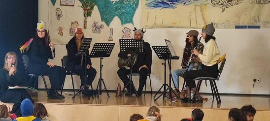 Nesta atividade contámos com a presença da educadora de infância Ana Cabral na narração e na parte orquestral por 5 músicos e pelos respetivos instrumentos musicais que estavam associados a cada personagem da história: