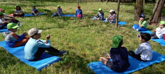 Neste parque, a turma procurou um espaço agradável para colocar os colchões que trouxeram da escola. Com os colchões em forma de círculo, os alunos sentaram-se confortavelmente a ouviram os sons da natureza, identificando bastantes, desde da mosca, aos pássaros, ao cão e às folhas a mexerem. Seguidamente fizeram um exercício de respiração explicado pela professora e após este momento, deitaram-se confortavelmente, fecharam os olhos e ouviram a meditação: “Das formiguinhas” que consistia em fazer as crianças sentirem-se felizes com a ajuda das formigas.