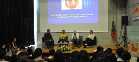 Foi neste contexto que, na tarde de sete de maio, se realizou, para um público de três turmas do 11ºano, uma ação de sensibilização para a importância da dádiva de sangue – “Bora lá! Dar sangue salva vidas – um valor socialmente reconhecido” – dinamizada pelo responsável pela gestão da dádiva de sangue do Serviço de Sangue e Medicina Transfusional dos HUC , Dr. Mário Gama, acompanhado pelo Dr. José Pedro Ferreira. A sua apresentação foi muito esclarecedora não só do ponto de vista do processo em si, mas também pela partilha de situações concretas, alguns casos-limite, que emocionam pelo encontro feliz entre a ciência e o altruísmo.